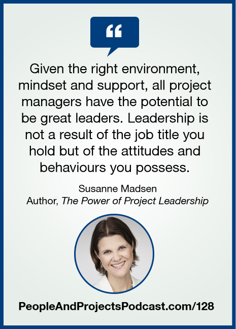 I’m happy to welcome Susanne Madsen to the podcast. Susanne recently published The Power of Project Leadership: 7 Keys to Help You Transform from Project Manager to Project Leader.