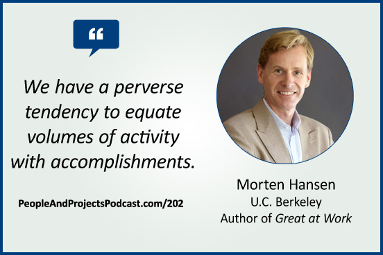 The results are now available in Morten’s book Great at Work: How Top Performers Do Less, Work Better, and Achieve More. The book is filled with evidence-based insights that align very nicely with good project management practices.