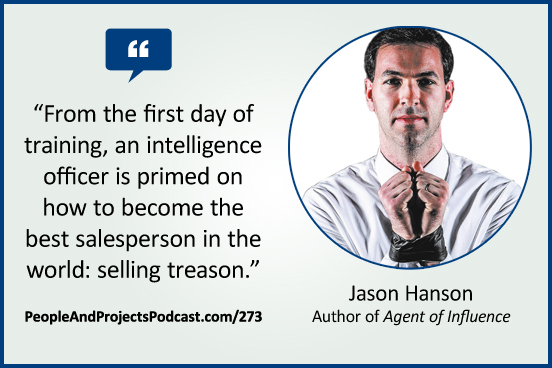 My guest today is Jason Hanson, a former CIA spy who has written some intriguing books about applying spy skills to those of us who aren’t spies. In this episode, we talk about his most recent book, which is entitled Agent of Influence: How to Use Spy Skills to Persuade Anyone, Sell Anything, and Build a Successful Business. And though you and I aren’t spies–or at least that’s our story and we’re sticking with it–there are lessons that can be applied by those of us who are responsible for leading teams and projects.